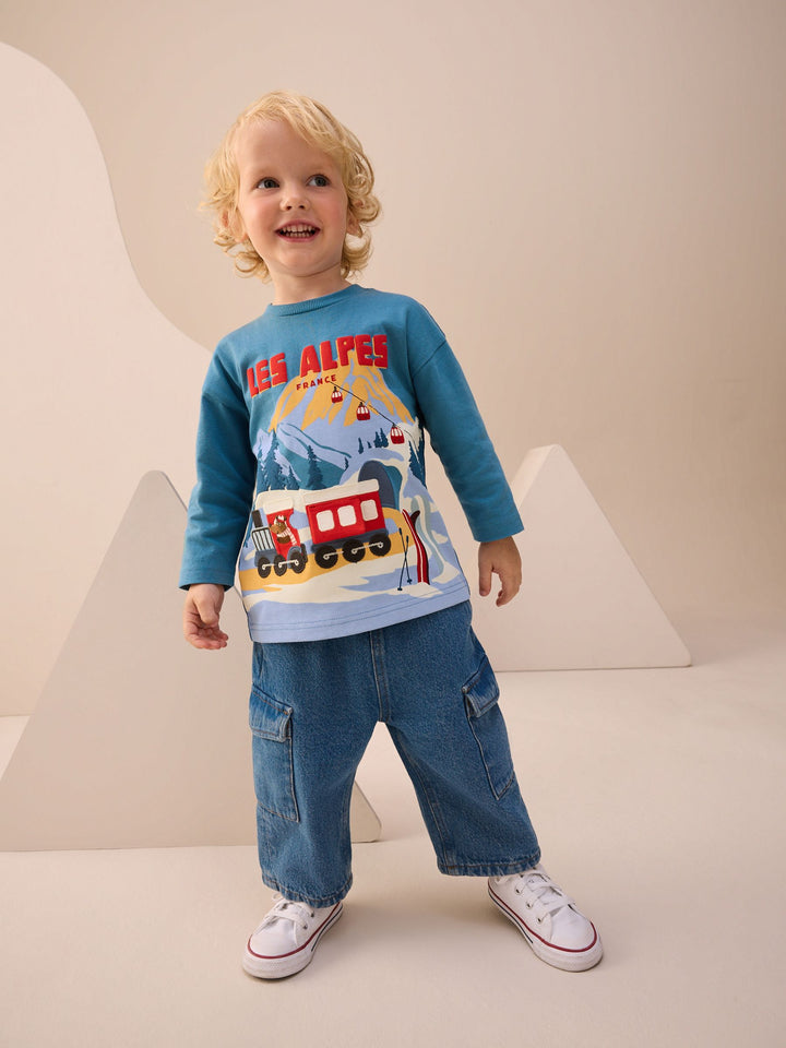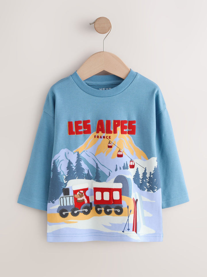 Blue Les Alpes Interactive Long Sleeve Appliqué T-Shirt (3mths-7yrs)