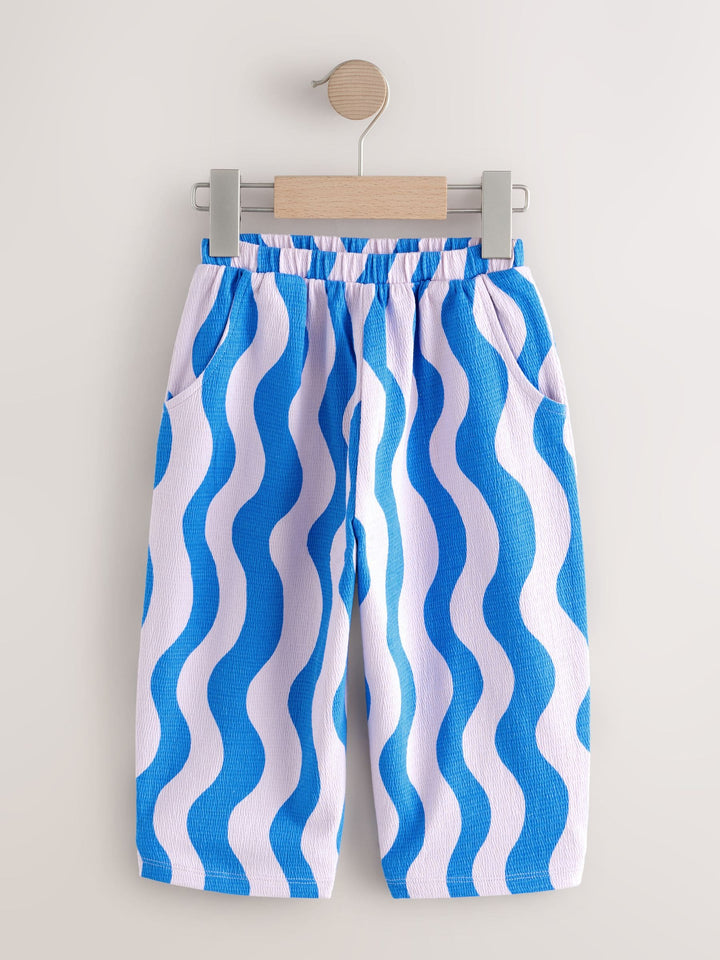 Blue/Lilac Wave Stripe Textured Barrel Leg Trousers (3mths-7yrs)