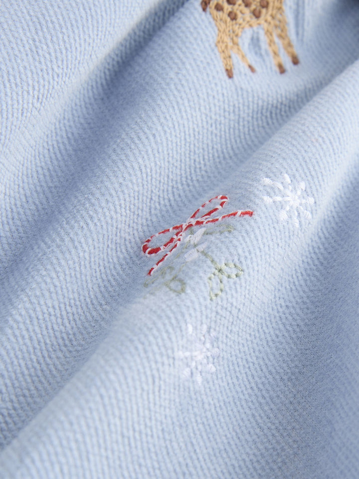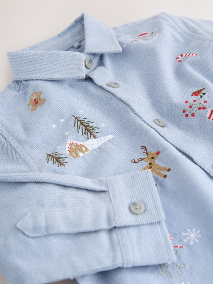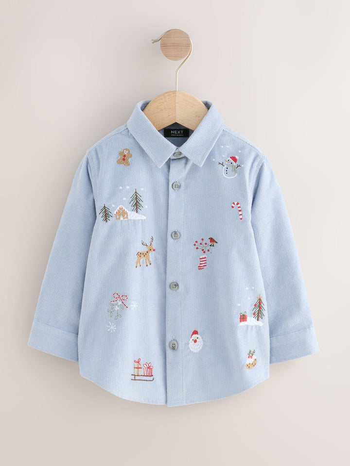 Blue Long Sleeve Christmas Embroidery Character Shirt (3mths-7yrs)