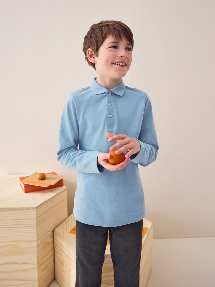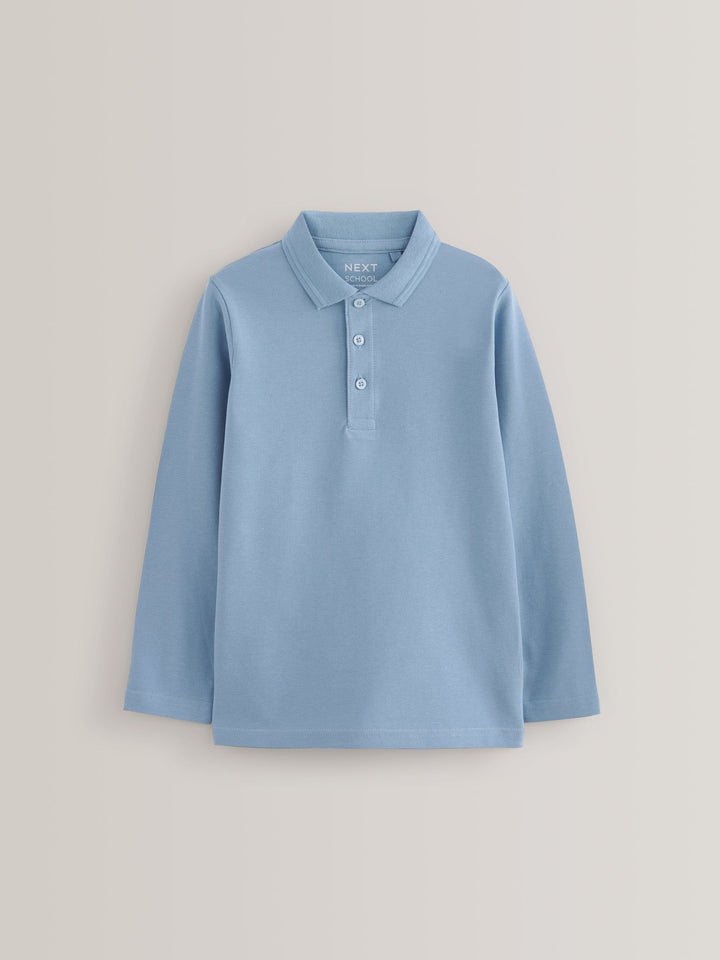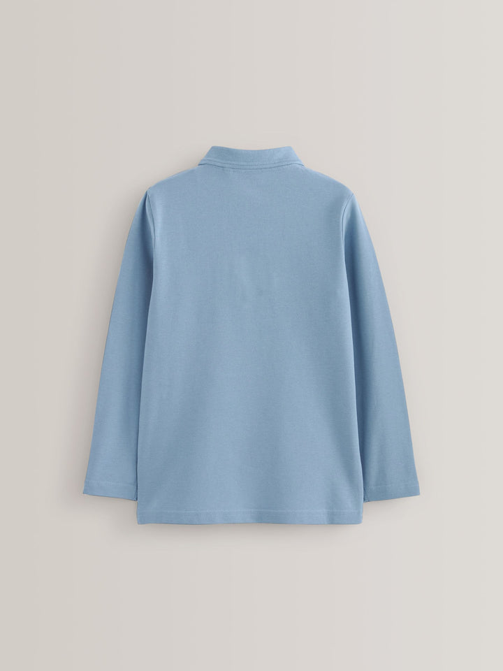 Blue Long Sleeve School Polo Shirts 2 Pack (3-16yrs)