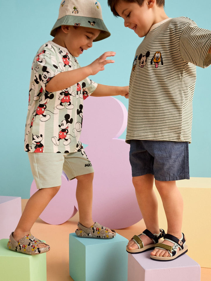 Disney fans will love this stylish 2-piece set, featuring fun officially licensed Mickey Mouse graphic prints and embroidered patches across a short sleeve t-shirt and coordinating shorts, made from pure cotton. 2-piece set 100% cotton Mickey Mouse graphics and patches Short sleeve t-shirt Crewneck collar Elastic waistband shorts Machine washable. T-shirt and Shorts 100% Cotton. Country of Origin: Bangladesh