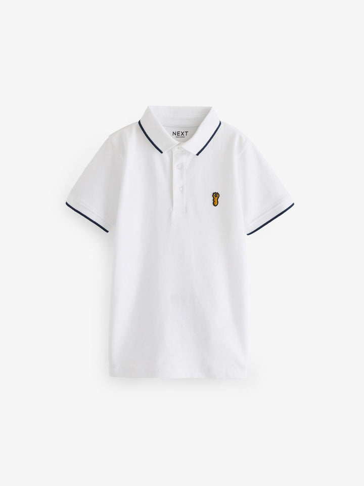 Stock up on their smart-casual staples, with this 3-pack of cotton-blend polo shirts. Each polo shirt has a button-up neck that leads to a classic collar, with contrast trims, stag detailing to the chest and ribbed sleeve hems. 3-pack Cotton-blend Regular fit Button-up neck Classic collar Embroidered chest logo Machine washable. 3 x Polo Shirt 96% Cotton, 4% Elastane. Country of Origin: Pakistan