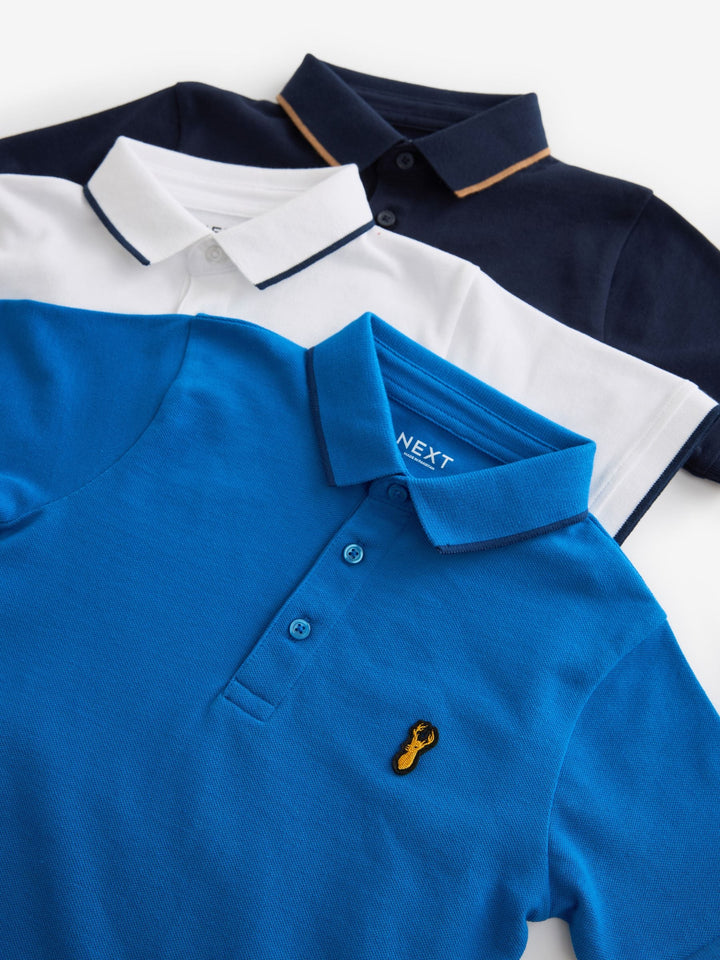 Blue/Navy/White Short Sleeve Polo Shirts 3 Pack (3-16yrs)
