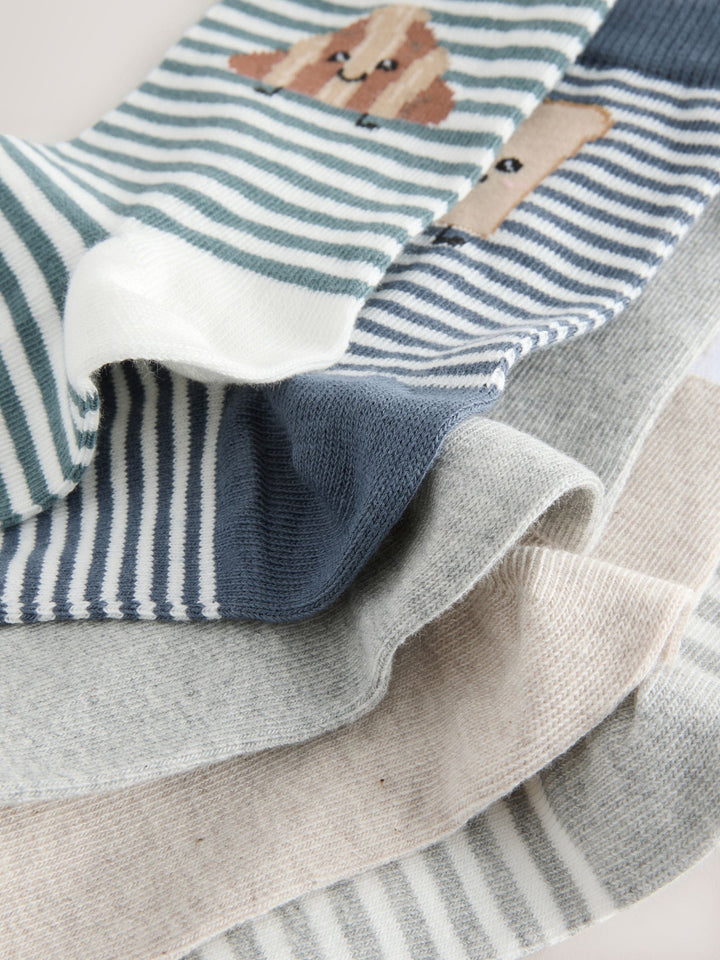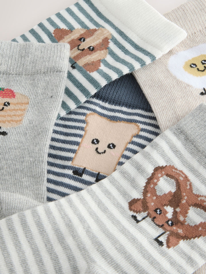 Blue/Neutral Food Characters Print Rich Socks 5 Pack