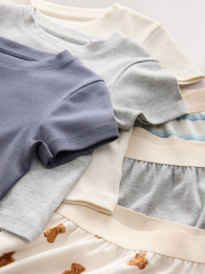 Blue/Neutral Stripe Bear Joggers Pyjamas Set 3 Pack (3-16yrs)