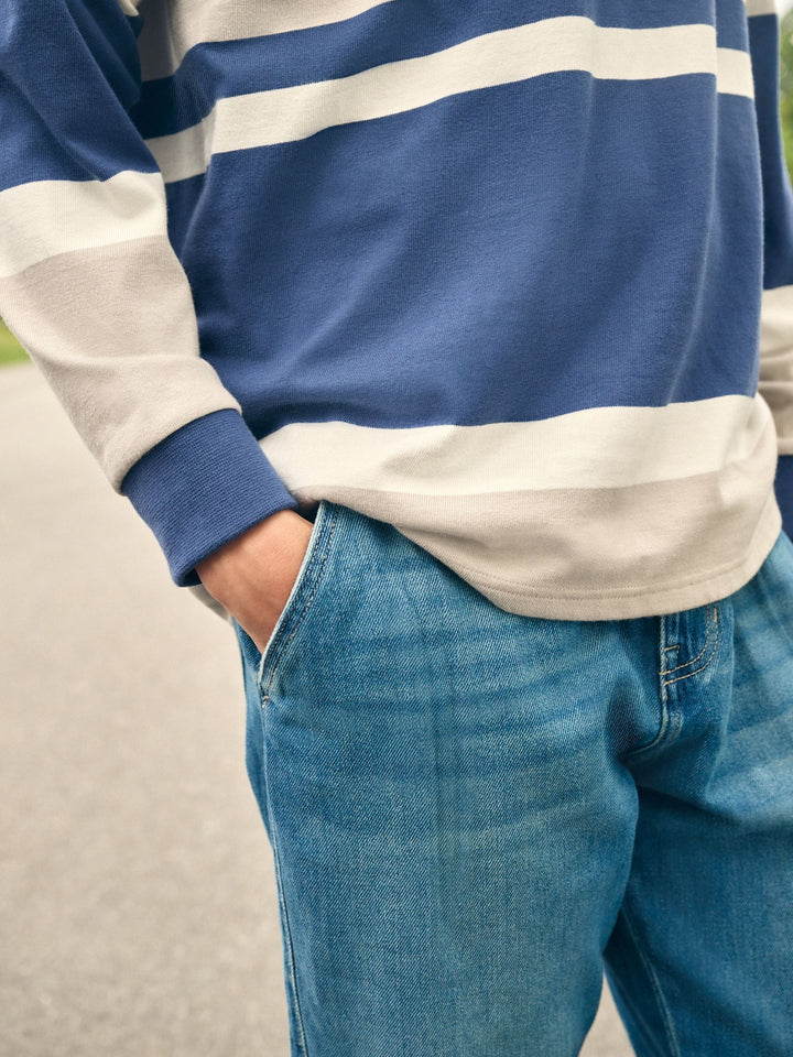 Step into the new season with our striped rugby shirt, a key trend piece for timeless style. Made from a heavyweight cotton fabric with an embroidered chest logo and contrast collar, it's designed for an authentic feel. This shirt is perfect for preppy styling and can be easily teamed with jeans for a classic, off-duty look. Trend piece Long sleeve Heavyweight Machine washable. 100% Cotton. Country of Origin: Pakistan