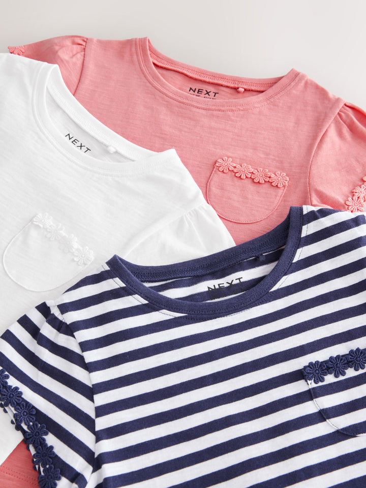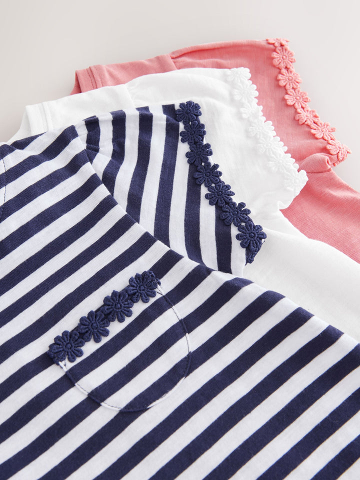 Blue/Pink/White Daisy Trim T-Shirts 3 Pack (1.5-16yrs)