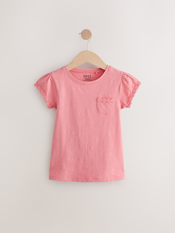 Stock up on summer staples with this 3 pack of daisy trim t-shirts. In pure cotton, these short sleeve tops are cut in a regular fit and feature chest pockets with daisy trim detailing on the sleeves. Pair with shorts or culottes for a comfy summer fit. 3 pack 100% cotton Regular fit Daisy trim design Chest pocket detailing Machine washable. 3 x T-shirt 100% Cotton. Country of Origin: Bangladesh
