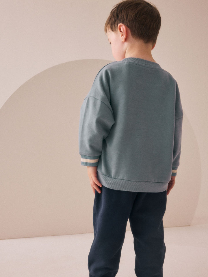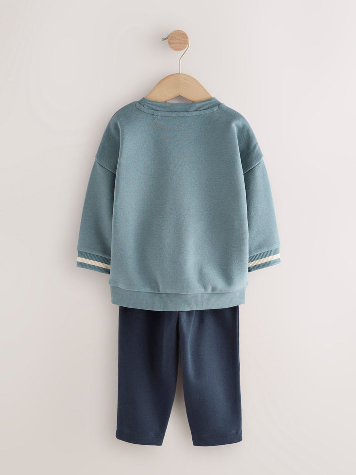 Get ready for an adventure with this fun Sweatshirt and Joggers Set. This two-piece outfit features a crew neck sweatshirt and matching cuffed joggers making a comfortable set perfect for playtime. 2 piece set Crew neck sweatshirt Cuffed joggers Everyday staple Machine washable. Sweater and Jogger 80% Cotton, 20% Recycled polyester. Country of Origin: Bangladesh