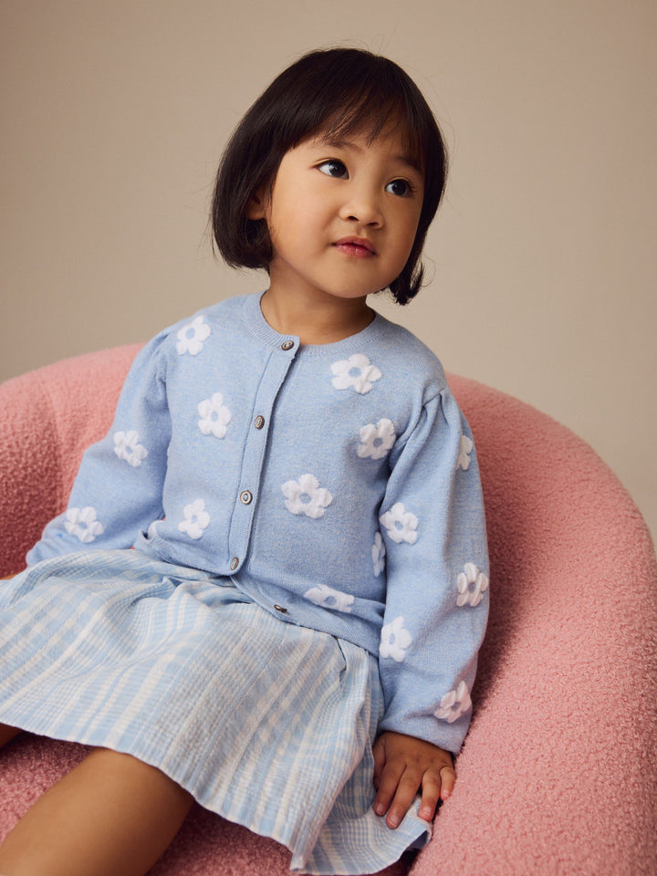 Blue Pleated Sleeve Cardigan (3mths-10yrs)