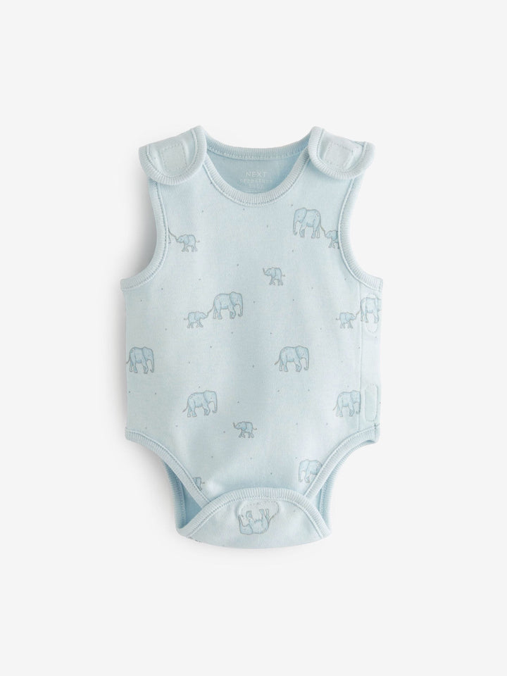 Our all-in-one 3 pack blue elephant hip displaysia baby bodysuits are specially crafted to be worn comfortably with a hip dysplasia harness. Created using a luxuriously soft cotton fabric, these bodysuits feature convenient popper openings for effortless and speedy dressing. Machine washable. 3 x Bodysuit 100% Cotton. Country of Origin: India Warning: Keep away from fire and flames.