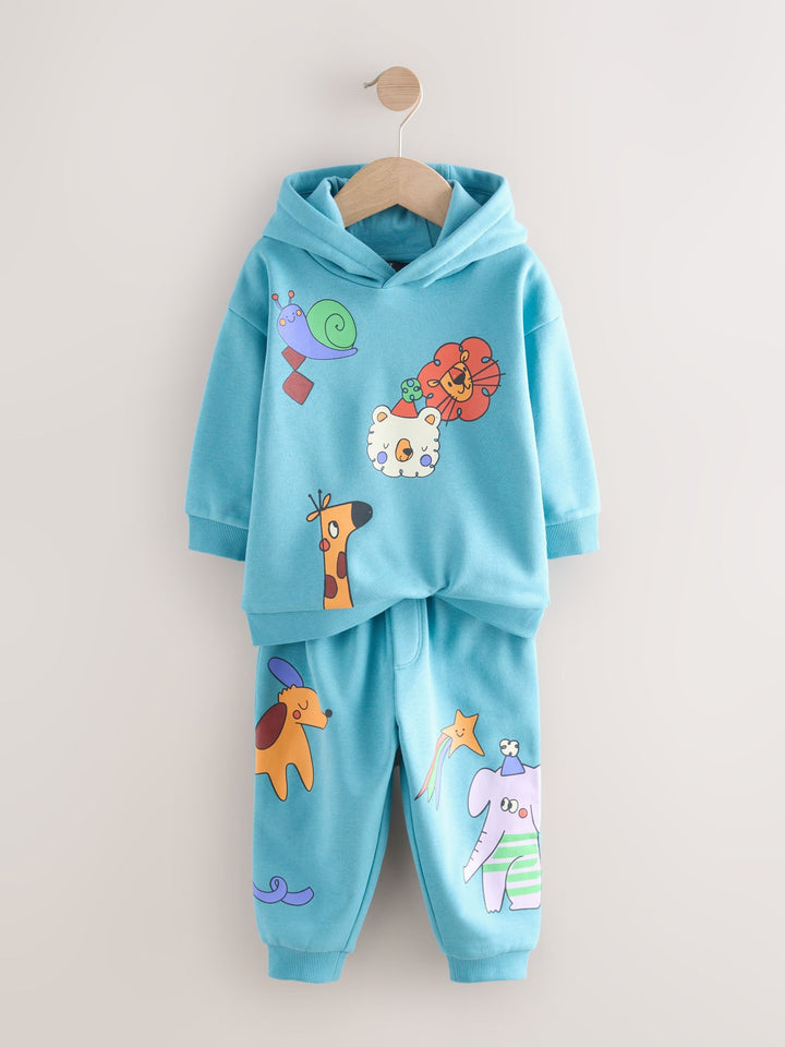 Blue Printed Hoodie And Joggers Set (3mths-7yrs)