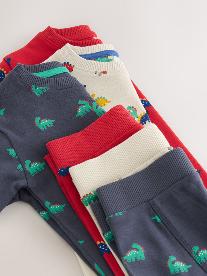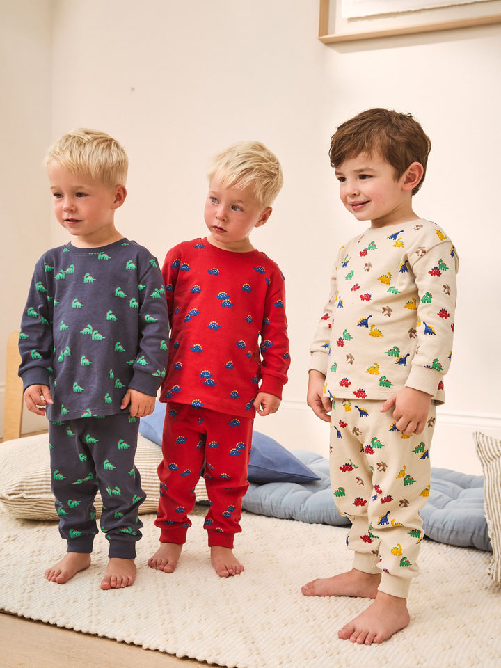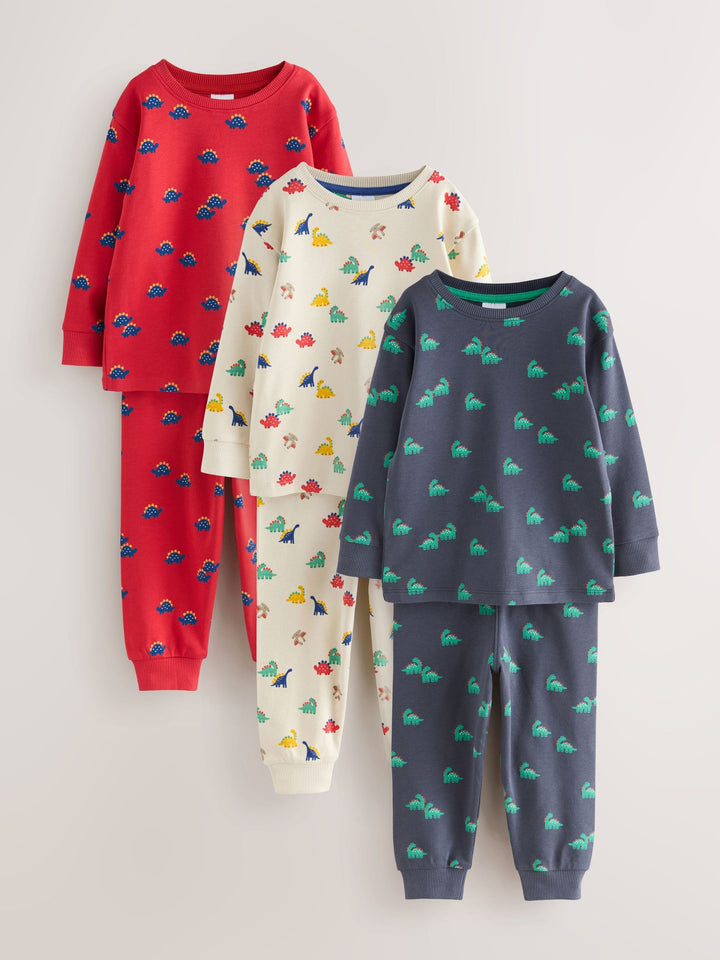 Make their bedtime routine fun with this 3 pack of Blue/Red/Cream snuggle pyjamas. The soft fabric and snuggle fit ensure they're comfortable all night long. The pack includes three different sets in playful colours and festive prints, making them a practical and cosy choice for their winter wardrobe. Snuggle fit Long sleeves Matching joggers Festive prints 3 pack 3 x Pyjama Top and 3 x Pyjama Bottom 100% Cotton. Country of Origin: Bangladesh Warning: Keep away from fire and flames.