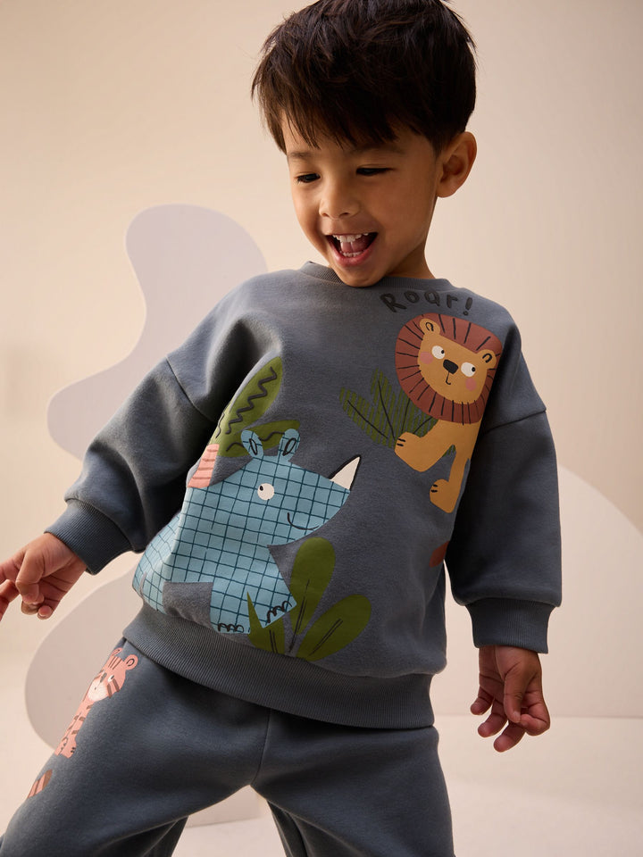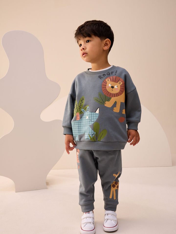 Blue Safari Animals Single Sweatshirt and Joggers Set (3mths-7yrs)