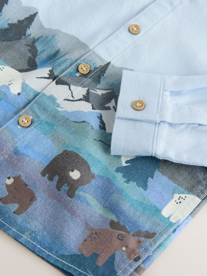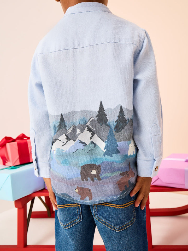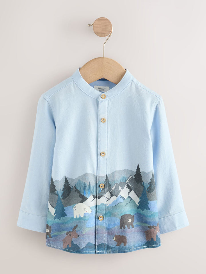 Blue Scene Long Sleeve Grandad Christmas Printed Shirt (3mths-10yrs)