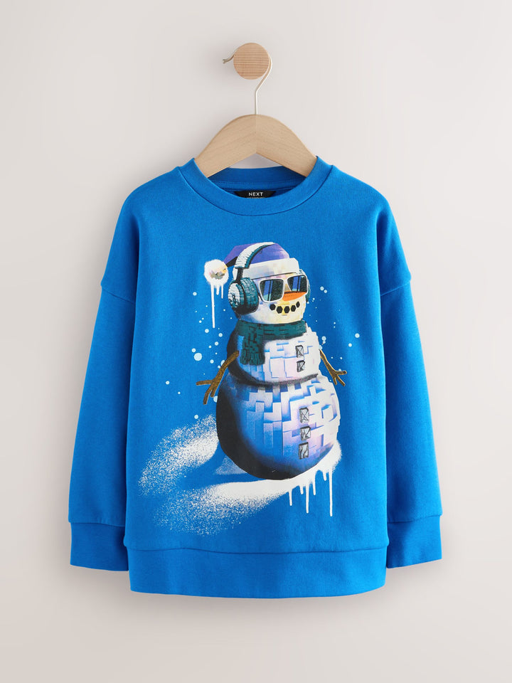 Blue Sequin Santa Christmas Crew Sweatshirt (3-16yrs)