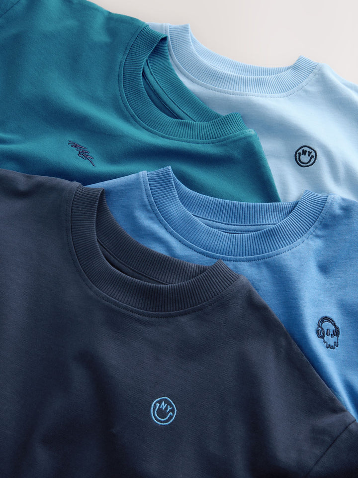 Blue Short Sleeve Logo Chest Graphic T-Shirts 4 Pack (3-16yrs)