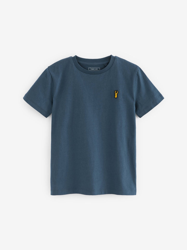 Blue Short Sleeve Stag Embroidered T-Shirts 4 Pack (3-16yrs)