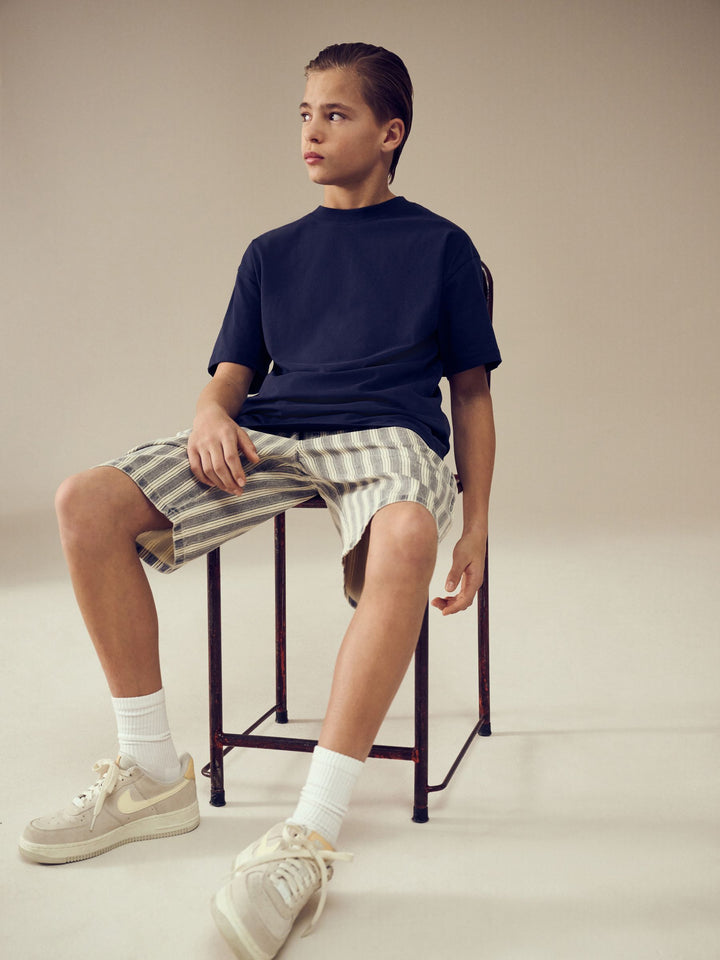 Bermuda shorts are this seasons' must have. Made from pure cotton, these stylish blue stripe shorts are designed with an elasticated pull-on waist for easy wear and come with pockets for a practical finish. Pair with a t-shirt and sandals for a complete look. 100% cotton Elasticated waist Pockets 100% Cotton. Country of Origin: Bangladesh