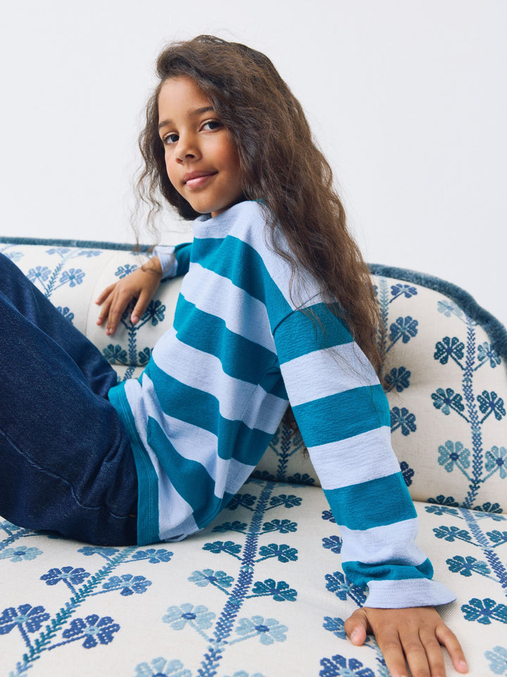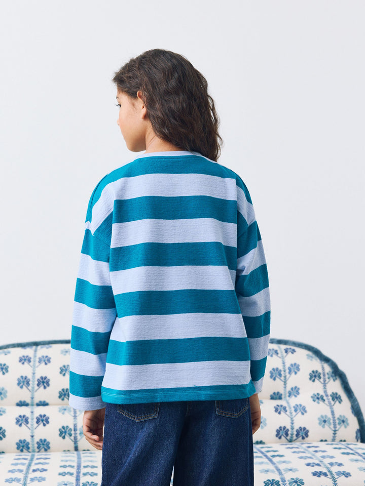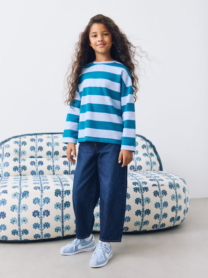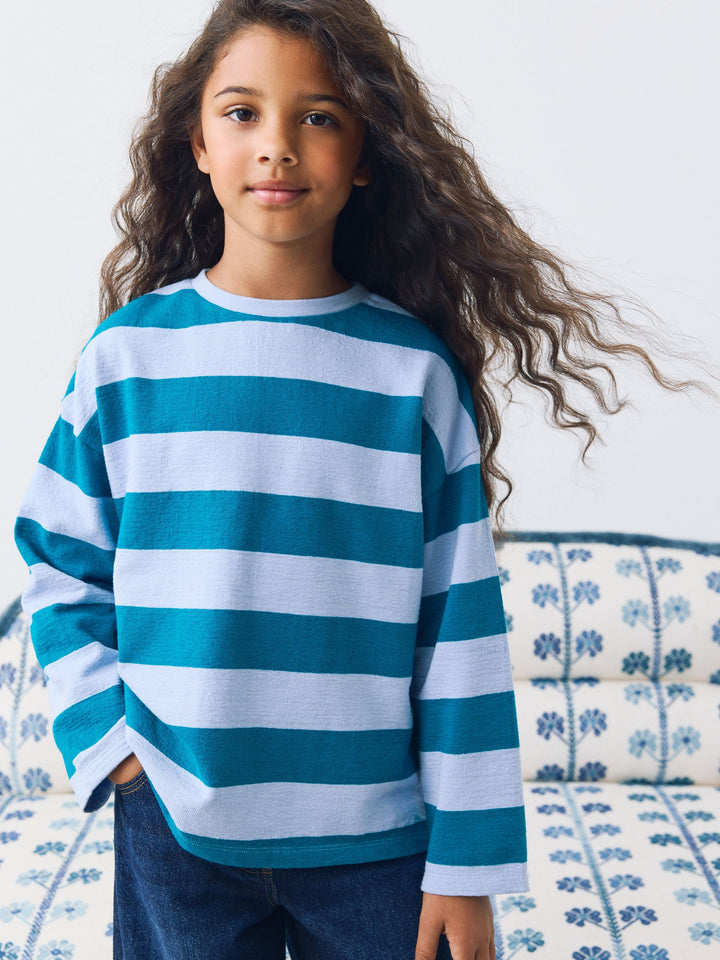 Blue Stripe Textured Long Sleeve Top (3-16yrs)