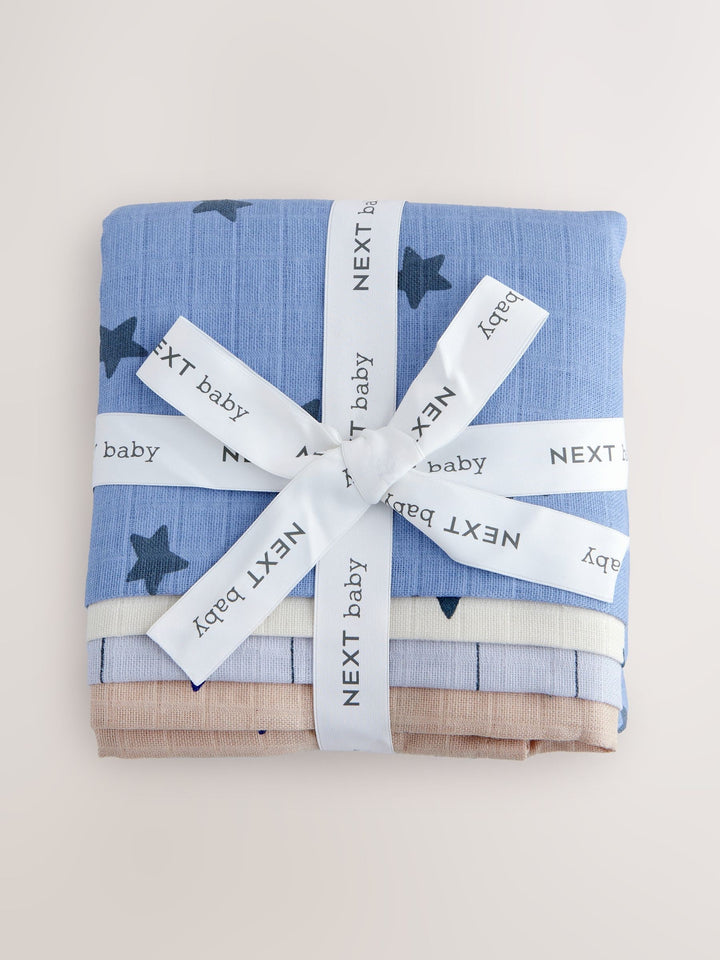 Blue/Tan Star Baby Muslins Cloths 4 Pack