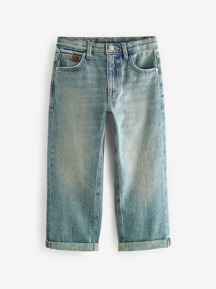 He'll love these mid-blue denim jeans, crafted from pure cotton denim with an adjustable waist for added comfort, finished with a 5-pocket design and a button and fly fastening. Regular fit Straight leg Adjustable waist 100% cotton 5-pocket design Machine washable. 100% Cotton. Country of Origin: Bangladesh