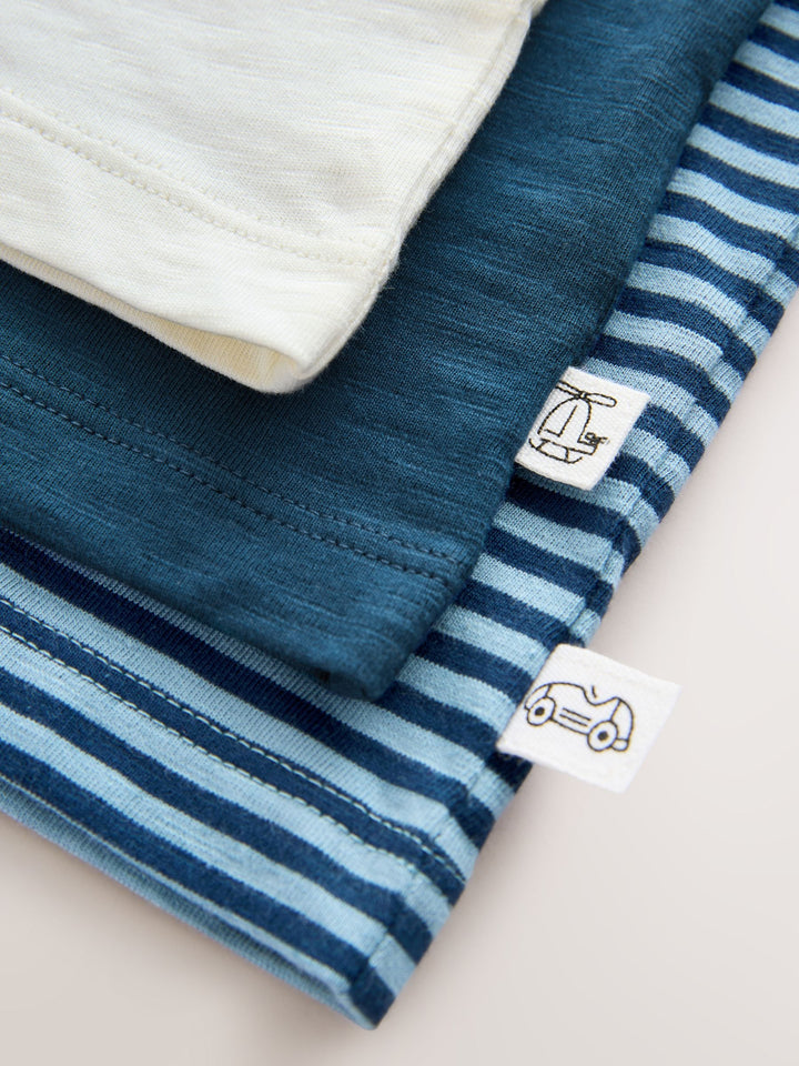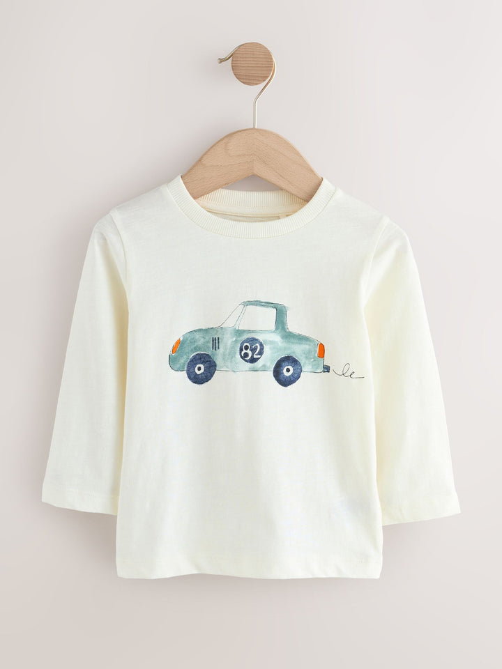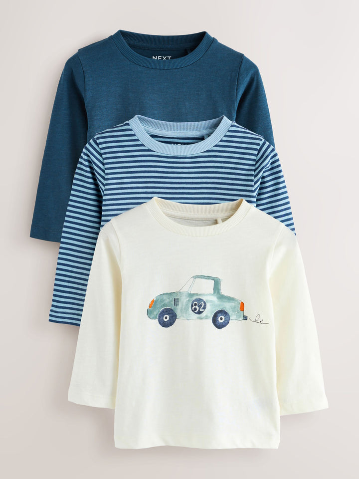 Blue Watercolour Car Long Sleeve Animal Print Character T-Shirts 3 Pack (3mths-7yrs)