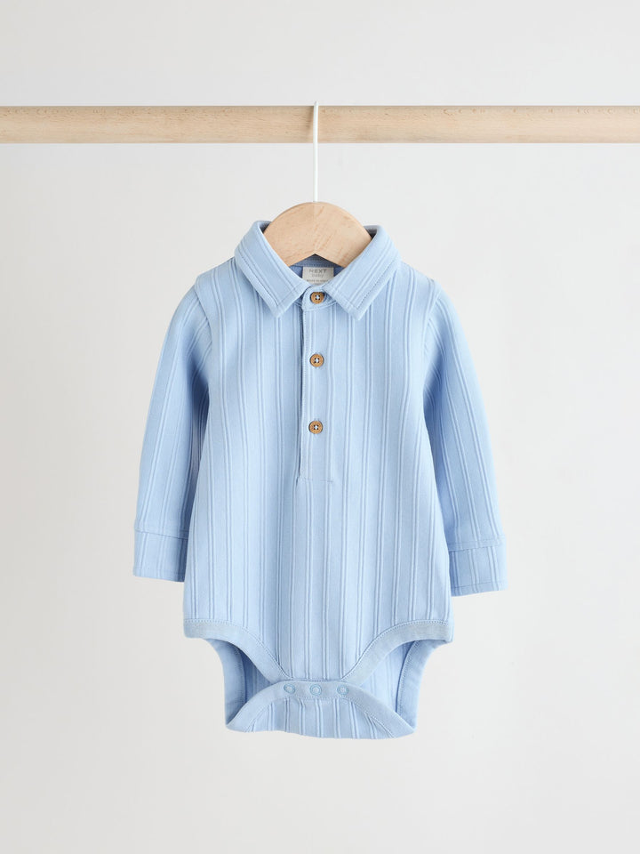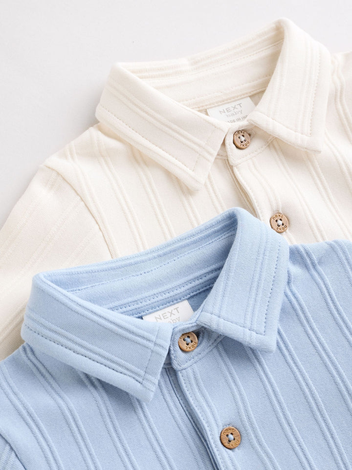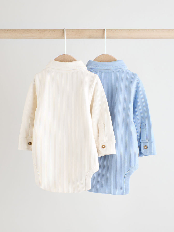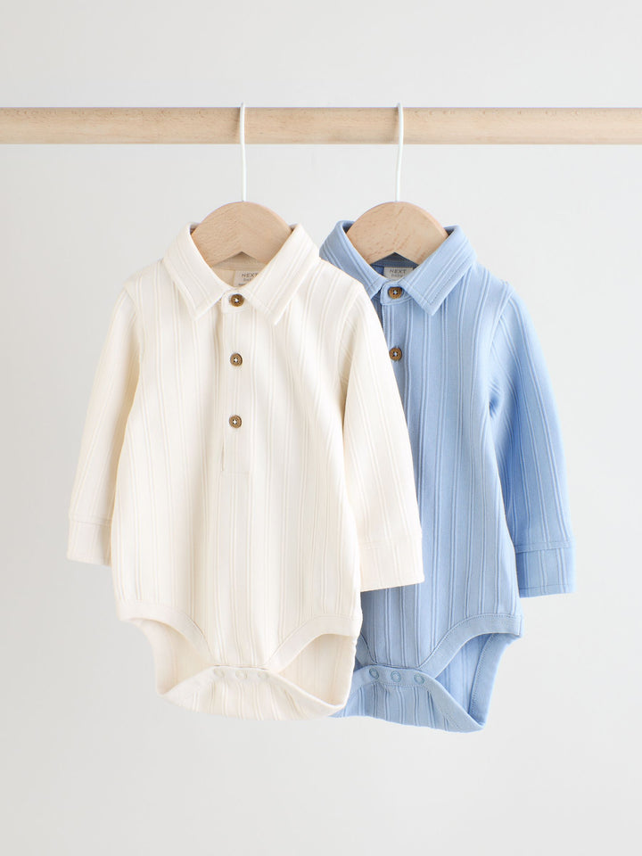 Blue/White 100% Cotton Jersey Collar Baby Bodysuits 2 Pack (0mths-2yrs)