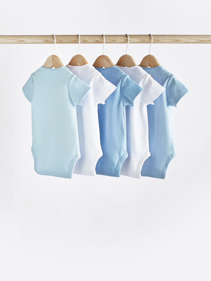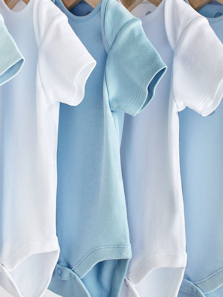 Stock up on your baby essentials with this 10-pack of pure cotton bodysuits in blue and white hues, featuring short sleeves, fold-over shoulders and a popper fastening for easy changing.Multipack of 5 Short sleeved 100%cotton Designed with printed back neck lapels Nickle free poppers Machine washable. 5 x Bodysuit 100% Cotton. Country of Origin: India Warning: Keep away from fire and flames.