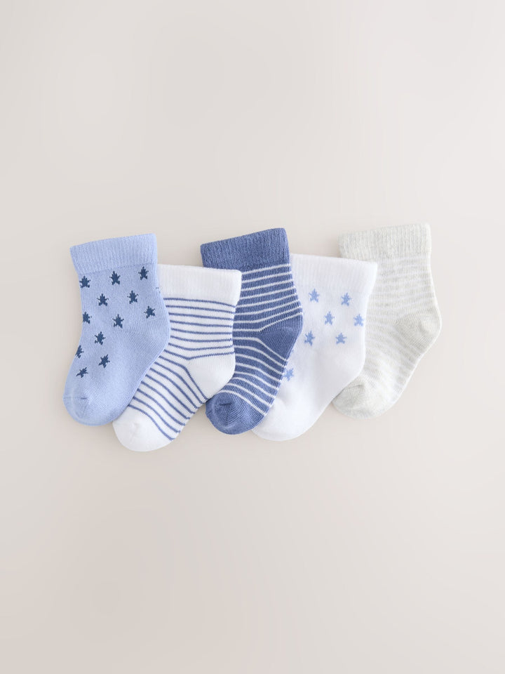 Blue/White Baby Socks 5 Pack (0mths-2yrs)