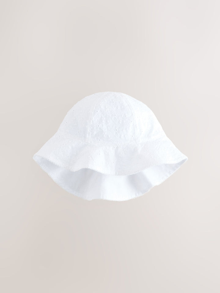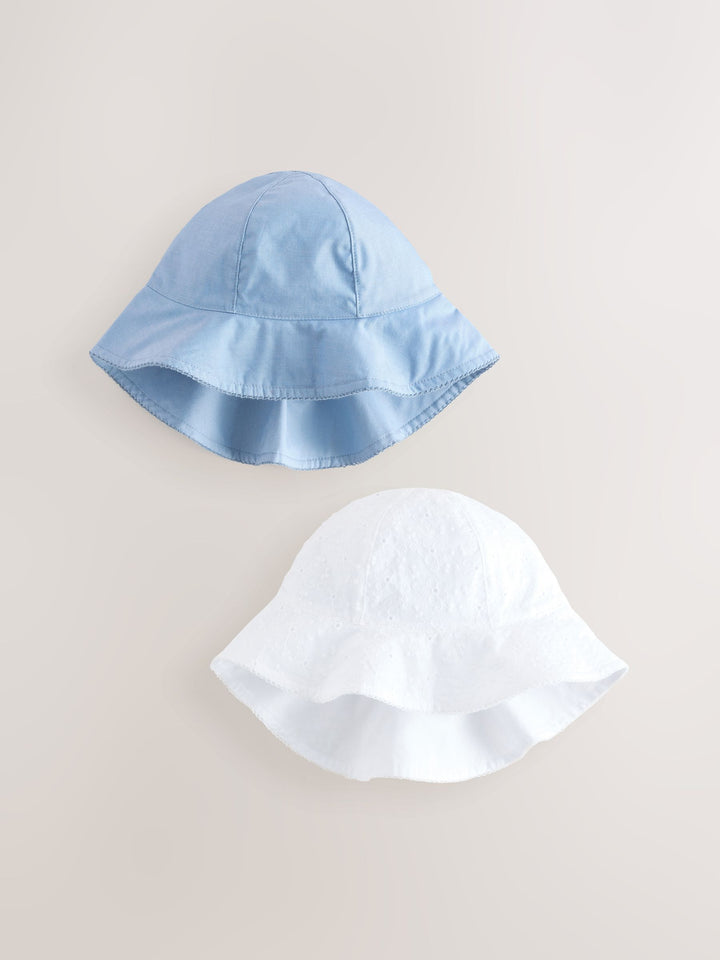 Blue/White Broderie And Chambray 100% Cotton Baby Hats 2 Pack (0mths-2yrs)