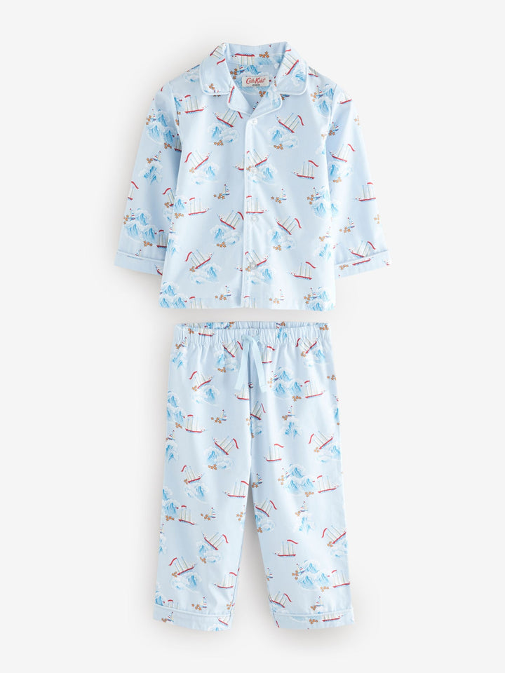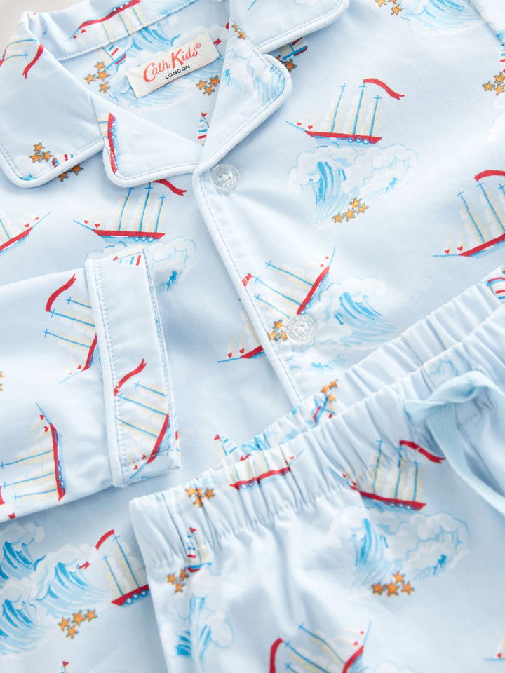 This 2-piece set is made from a soft cotton fabric, decorated with an iconic Cath Kidston boat print that'll spark their imagination as they settle down to bed. The set features a button-through top with a lapel collar and long sleeves, alongside a pair of full-length bottoms with an elasticated waistband. 2-piece set 100% cotton Cath Kidston print Long sleeve top Lapel collar Button fastening Full-length bottoms Machine washable. Pyjama Top and Pyjama Bottom 100% Cotton. Country of Origin: China