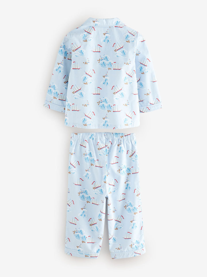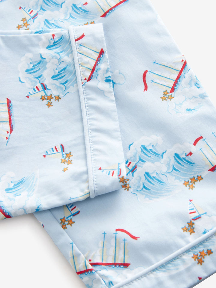 Blue/White Cath Kidston Boat Single Button Through 100% Cotton Pyjamas Set