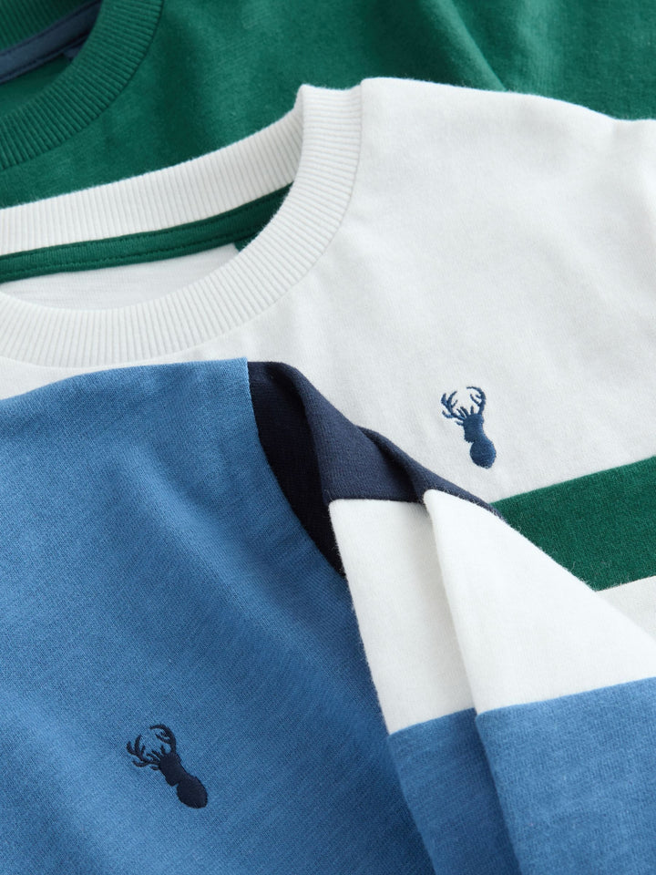Blue/White/Green Long Sleeve Colourblock T-Shirts 3 Pack (3-16yrs)