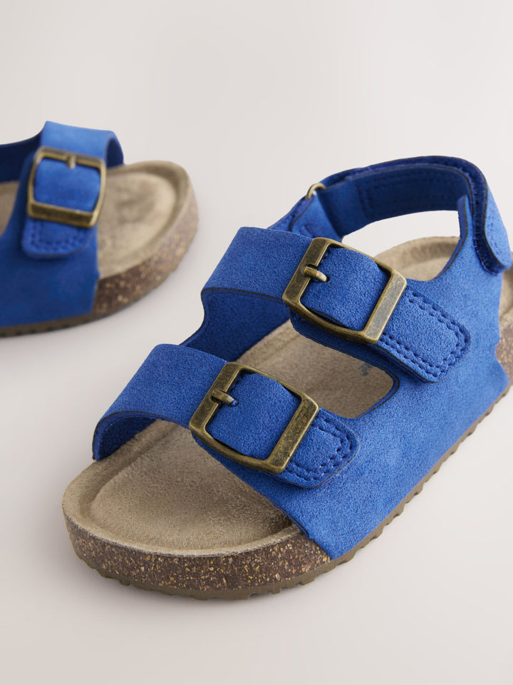 Blue Wide Fit (G) Double Buckle Cushioned Footbed Sandals