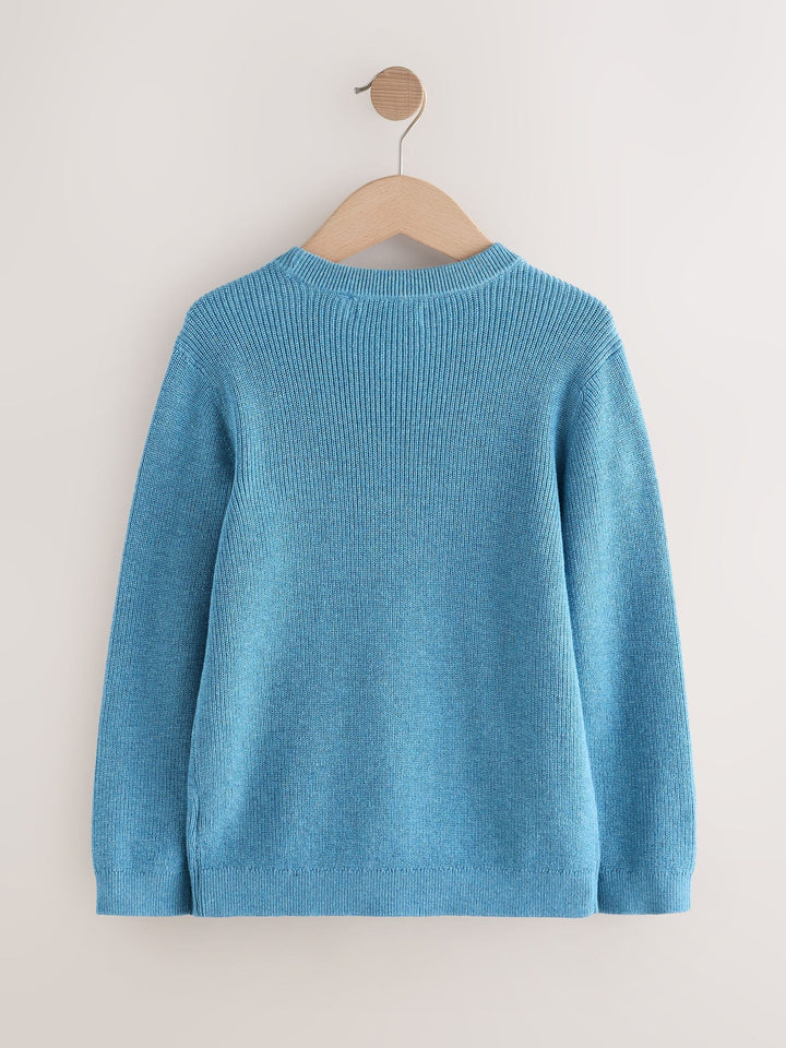 Blue With Stag Cotton Crew Neck Knitted Jumper (3-16yrs)