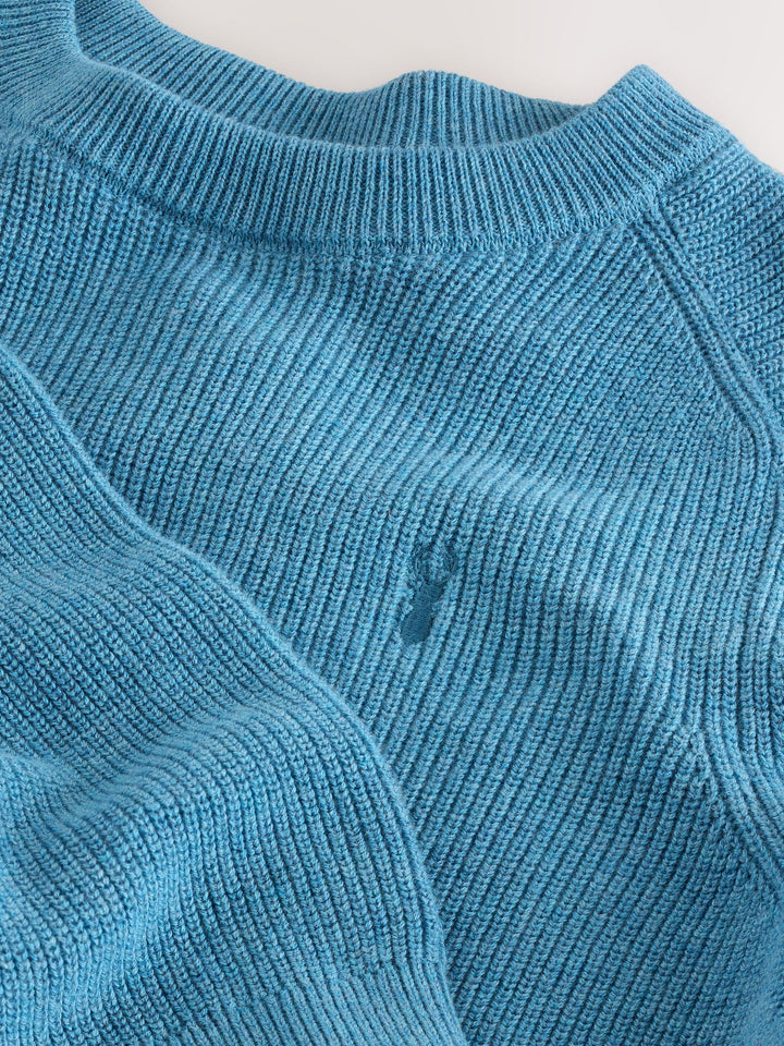 This cosy and versatile layer features a blue pure cotton construction with a ribbed design, featuring long sleeves, a crewneck collar and ribbed hems. Regular fit 100% cotton Crewneck collar Long sleeves Ribbed hems 100% Cotton. Country of Origin: Bangladesh
