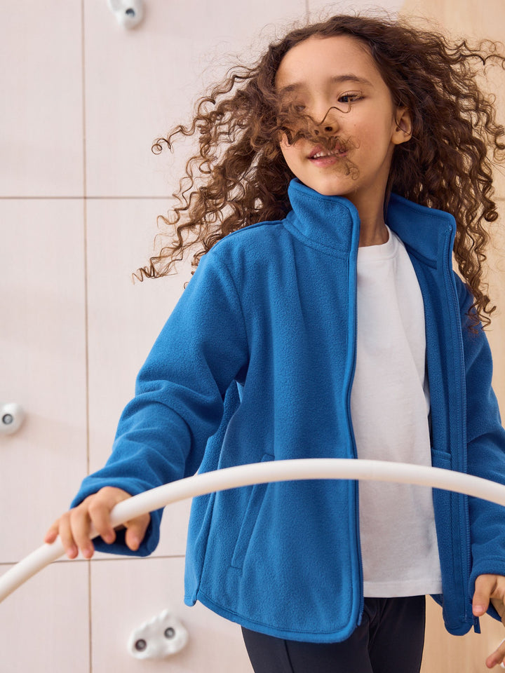 Stay warm and cosy in this zip-up blue fleece jacket. The soft polar fleece fabric is perfect for keeping the cold out during everyday wear or school PE lessons. A relaxed fit with a zip fastening and functional pockets for a practical finish. Relaxed fit Polar fleece Zip fastening Functional pockets Machine washable. 100% Recycled polyester. Country of Origin: Cambodia