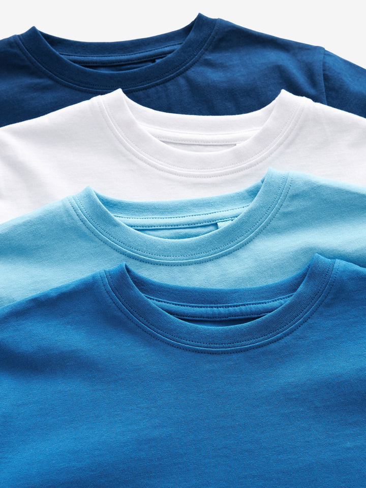 Curate your collection of essentials with our multipack of boys' T-Shirts. Made from a cotton rich blend, this pack of 4 tees are designed with short sleeves, a crew neck and cut in a regular fit. Presented in an array of colours, they're must-have for everyday wear. 4 pack Cotton blend fabric Crew neck Short sleeve 180gsm Single Jersey Machine washable. 4 x T-shirt 100% Cotton. Country of Origin: Bangladesh