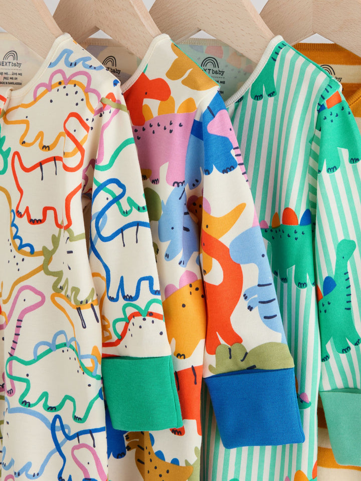 Perfect for their bedtime routine, this 4 pack of baby sleepsuits is a comfortable and practical choice. The super soft cotton fabric is gentle on their skin, while the two-way zip fastening makes nappy changes and dressing a breeze. The pack includes a mix of fun all-over print designs and plain ones, all finished with inner lined feet and anti-slip sole print from 9-12 months. Super soft 100% cotton Two-way zip fastening Inner lined feet Anti-slip sole print from 9-12 months Turn-back scratch mitts up to 3-6 months 4 pack No harmful chemicals or dyes Machine washable. 4 x Sleepsuit 100% Cotton. Country of Origin: Bangladesh Warning: Keep away from fire and flames.