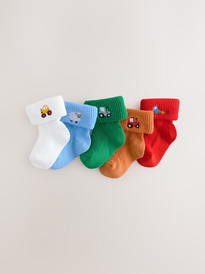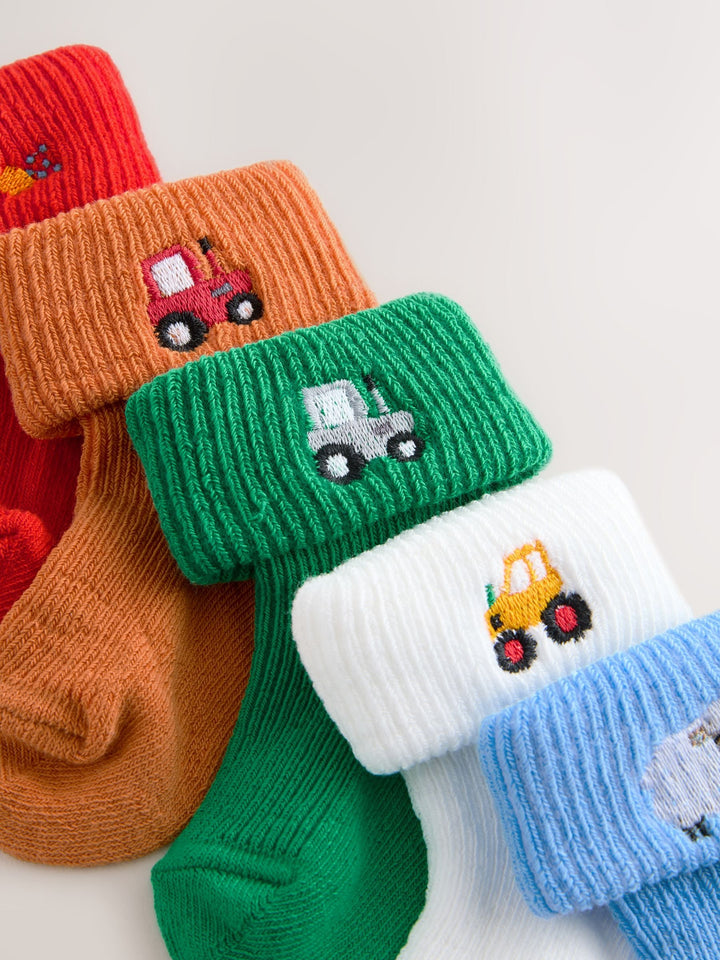 Bright Character Embroidered Roll Top Socks 5 Pack (0mths-2yrs)