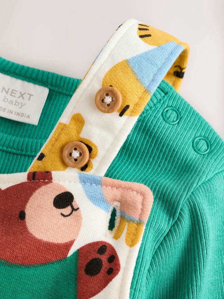 This 2-piece set is comfortable and cute, featuring a soft cotton-blend bodysuit with long sleeves and a popper fastening for easy changing, alongside a pair of pure-cotton dungarees with shoulder straps, available in a selection of different colours and prints. 2-piece set Long sleeve bodysuit Cotton-blend Popper fastening to the crotch 100% cotton dungarees Shoulder straps Machine washable. Dungaree 100% Cotton. Bodysuit 95% Cotton, 5% Elastane. Country of Origin: India Warning: Keep away from fire and flames.
