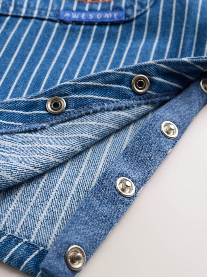 Perfect for playtime, this two-piece set is a stylish and functional outfit. The soft denim dungarees have a kangaroo pocket and adjustable straps, while the striped bodysuit features nickel-free poppers for easy changes. A comfortable and coordinated look for any casual occasion. 2-piece set Denim Adjustable straps Nickel-free poppers Kangaroo pocket Machine washable. Dungaree Main 100% Cotton. Lining 65% Recycled polyester, 35% Cotton. Bodysuit 82% Cotton, 18% Recycled polyester. Country of Origin: Sri Lanka Warning: Keep away from fire and flames.