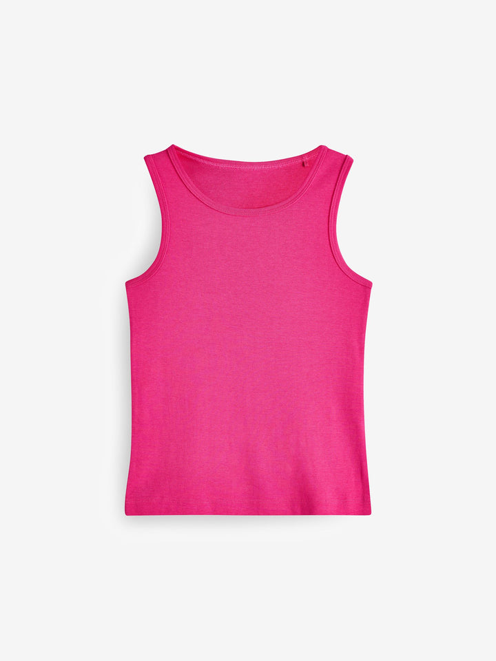 Perfect for stocking up on style staples, this 5-pack of bright pink vests is crafted from 100% cotton with a round collar, wide shoulders and a high back. 5-pack 100% cotton Round collar Wide shoulders High back Machine washable. 5 x Vest 100% Cotton. Country of Origin: Bangladesh