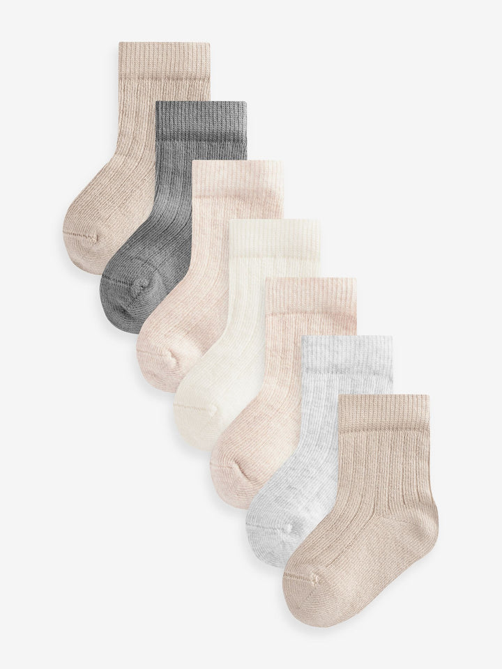 Sold as a seven pack these cute baby socks are cotton rich with added stretch for a comfortable fit and are free from harmful dyes or chemicals, keeping them safe for little ones. In a range of designs you can stock up their sock drawer with ease. 7 Pack Cotton rich Range of designs Machine washable. 7 x Socks 77% Cotton, 21% Nylon, 2% Lycra® Elastane. Country of Origin: Turkey Warning: Keep away from fire and flames.