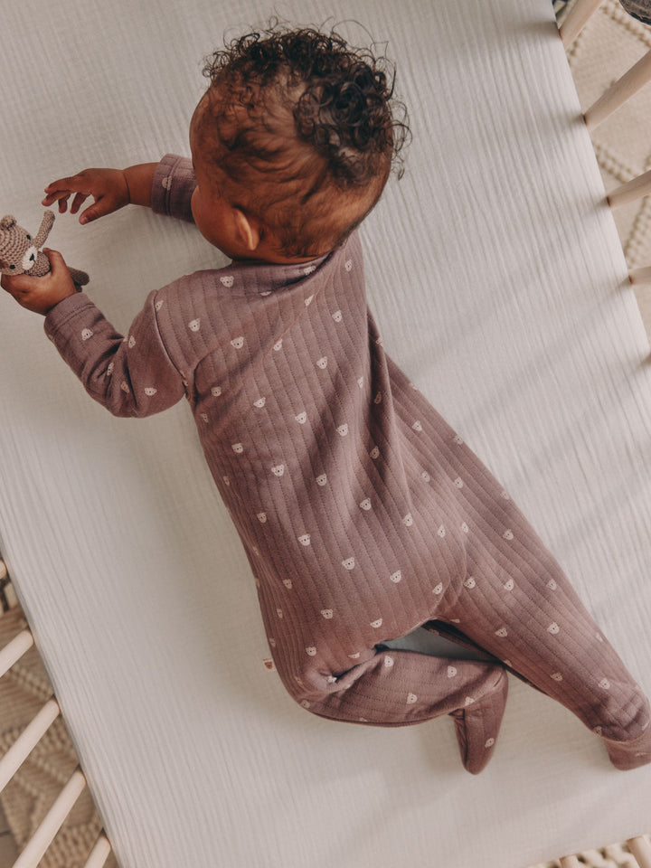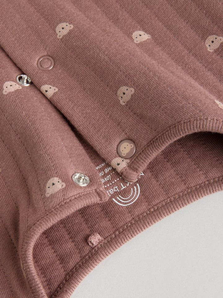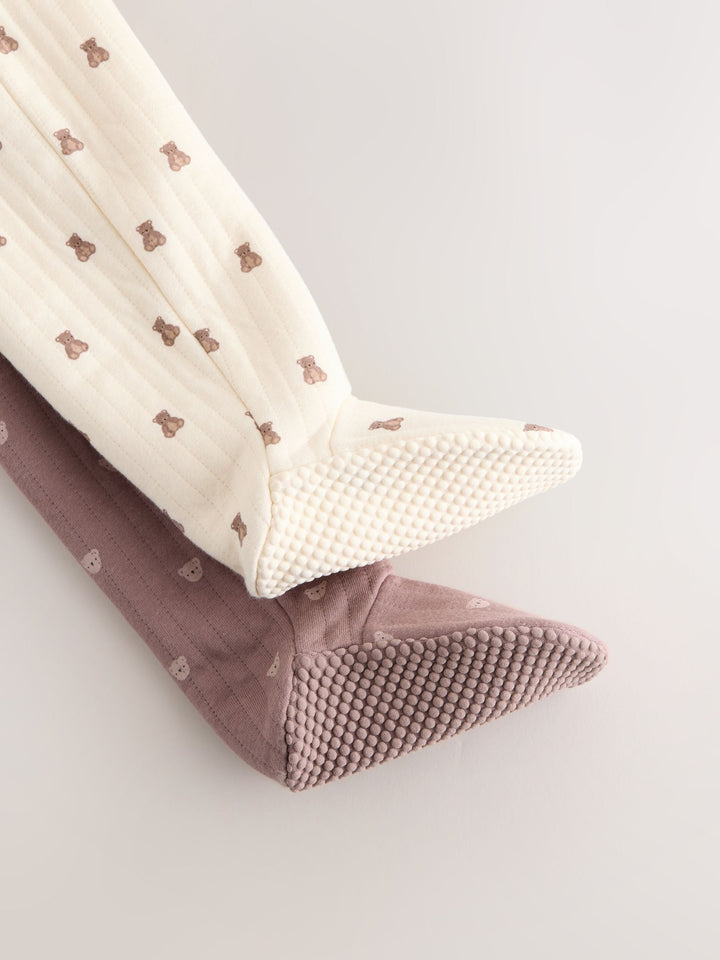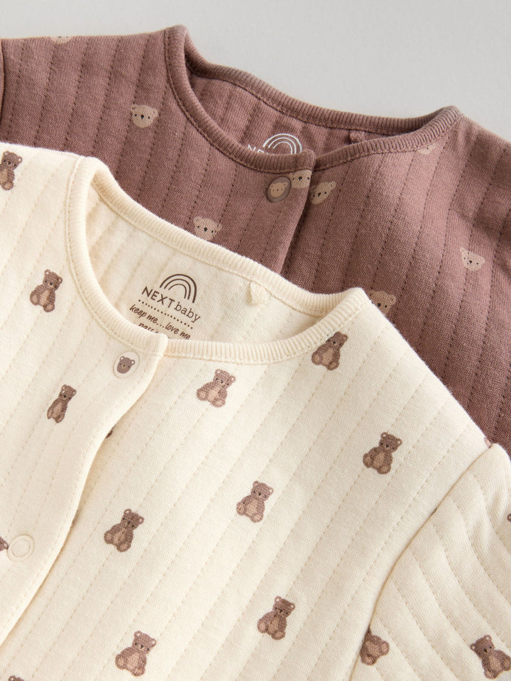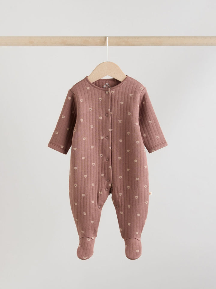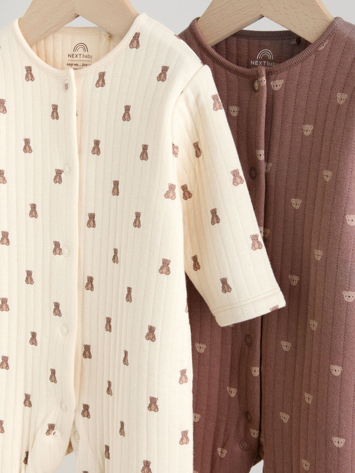 Brown Baby Quilted Bear Sleepsuits 2 Pack