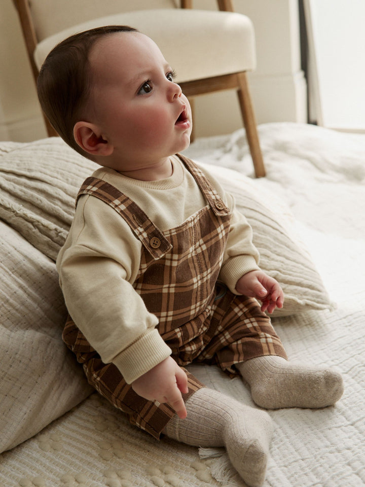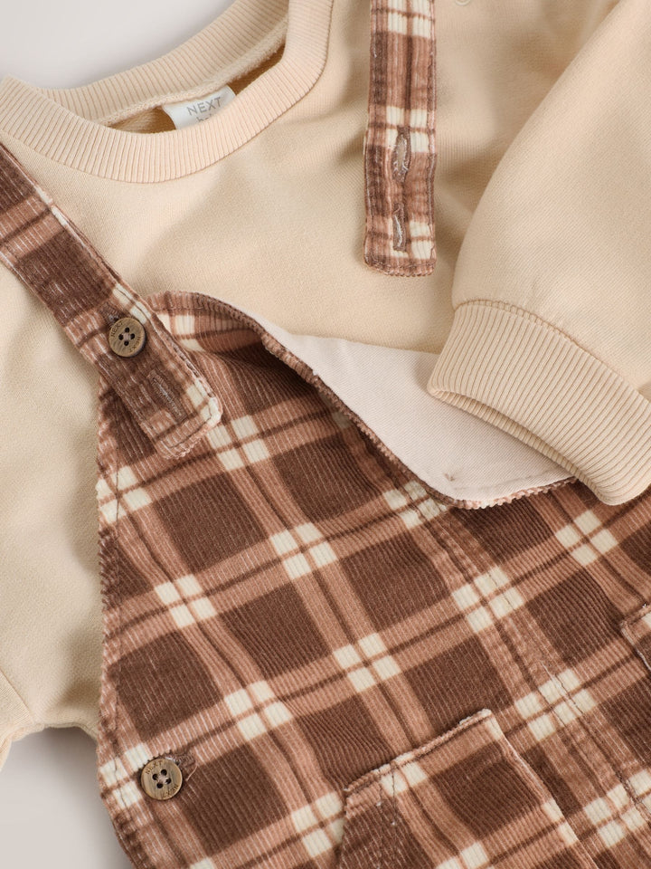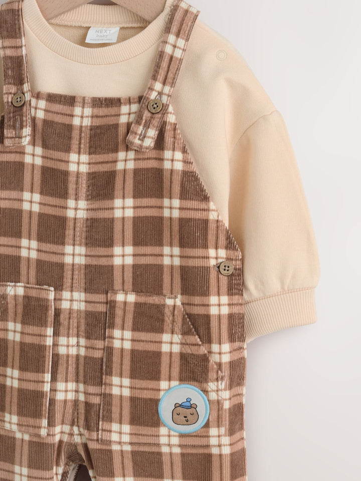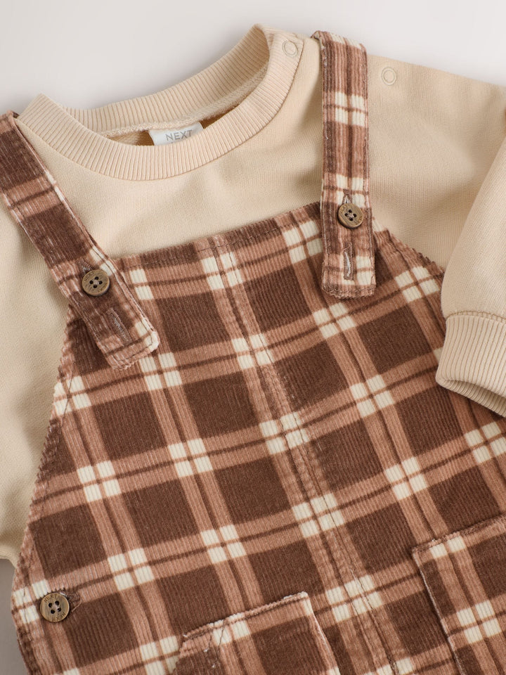 Brown Check Baby Cord Dungaree and Bodysuit Set (0mths-2yrs)