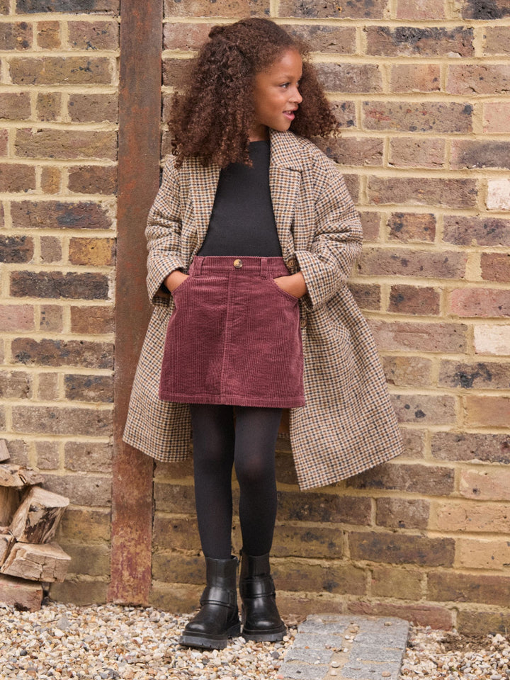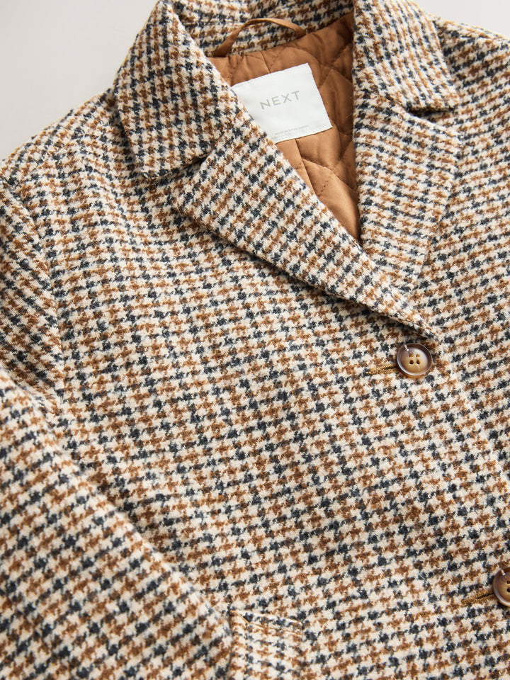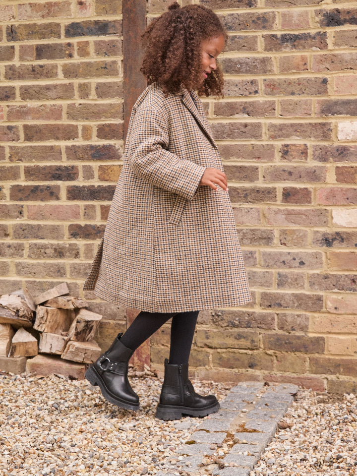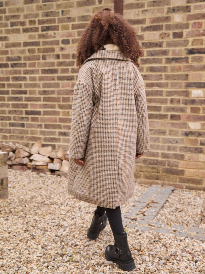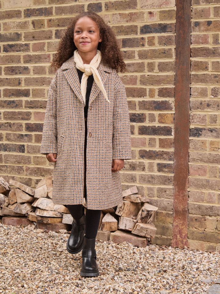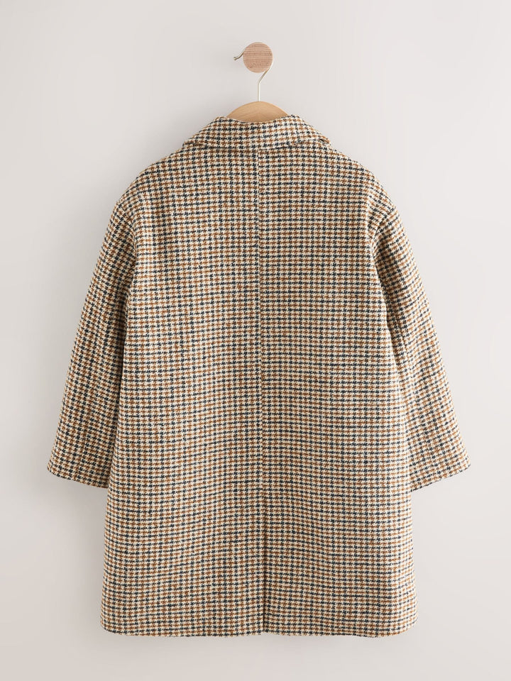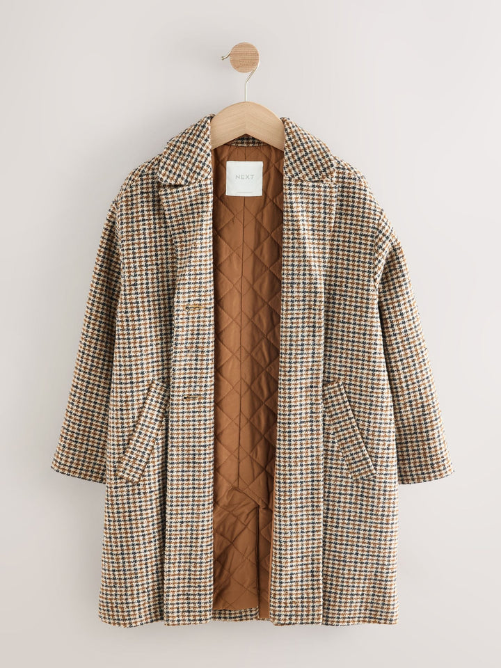 Brown Check Relaxed Fit Overcoat With Wool (3-16yrs)