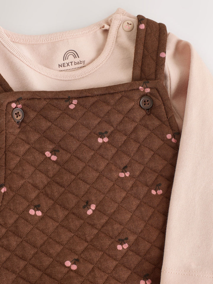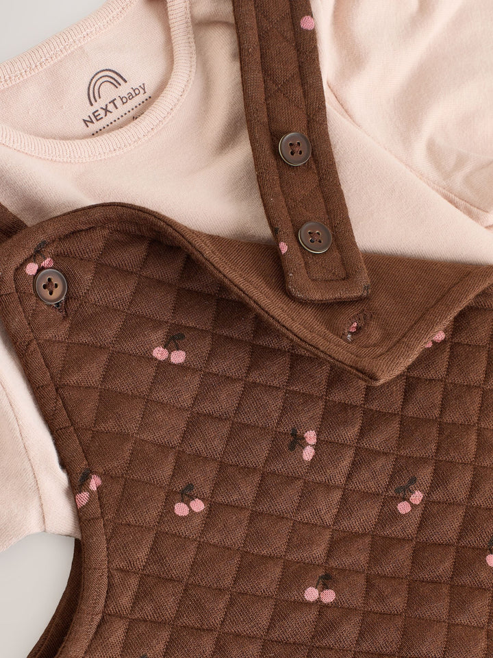 Brown Cherry Quilted Dungaree and Bodysuit Baby 2 Piece Set (0mths-3yrs)
