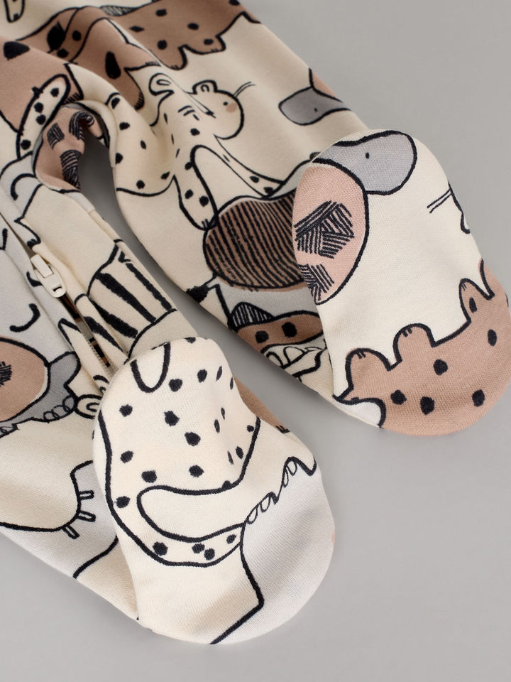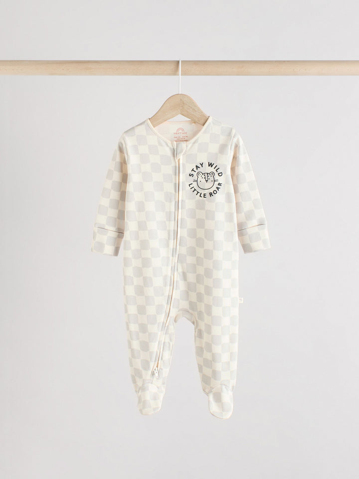 Brown/Cream Baby Two Way Zip Sleepsuits 3 Pack (0-2yrs)